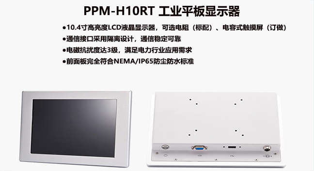 PPM-H10RT堅固美觀的全模具壓鑄成型面板,配合高溫五線電阻(電容)觸摸屏,高亮寬溫LED背光液晶屏,符合IP65防護等級。多種安裝方式,適用于機器視覺、機器人、檢測等高性能多通訊要求的應用場合。