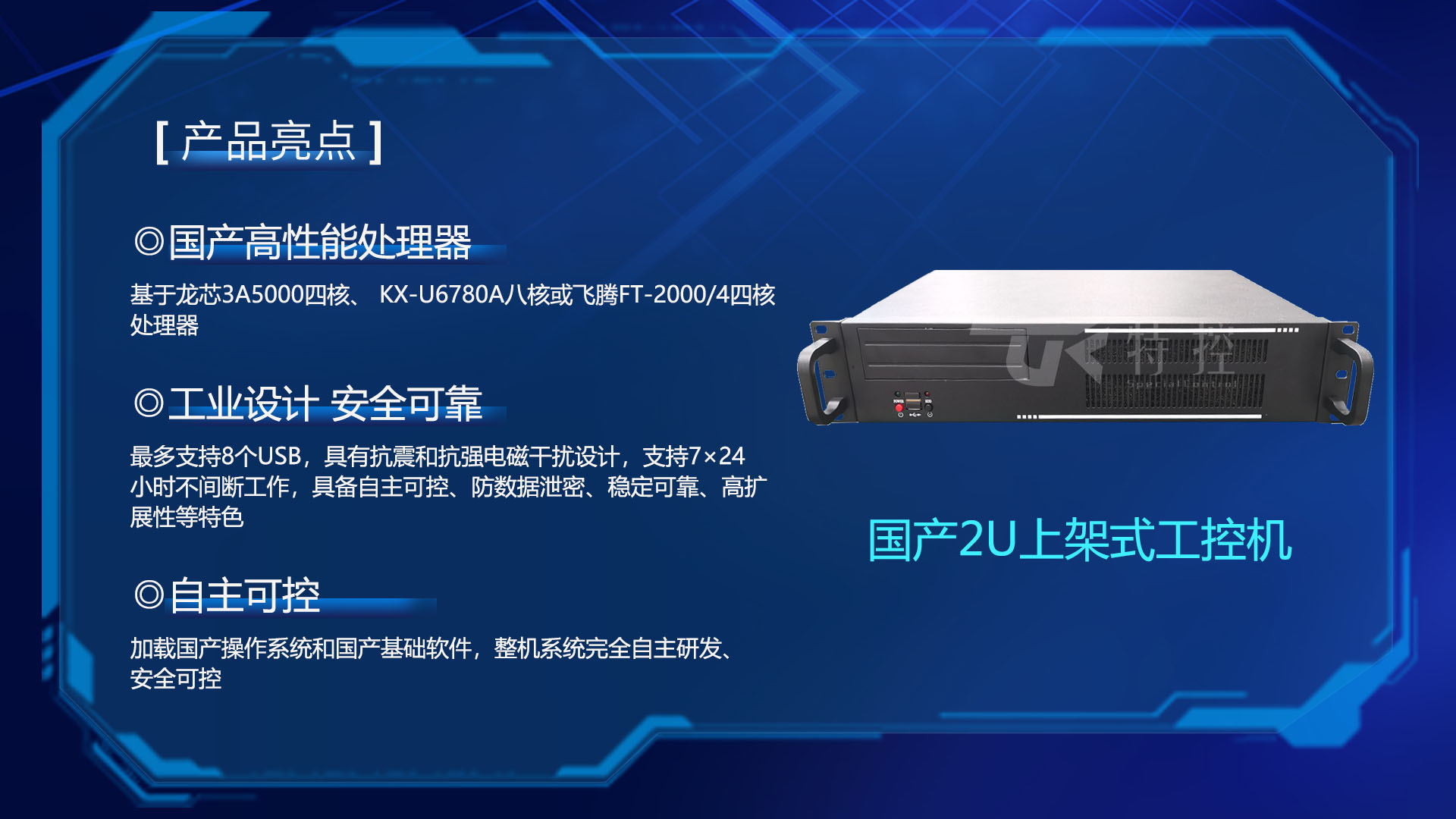 研恒(特控)國產(chǎn)2U上架式工控機(jī)基于龍芯3A5000四核、 KX-U6780A八核或飛騰FT2000/4四核處理器,配套國產(chǎn)BIOS, 加載國產(chǎn)操作系統(tǒng)和國產(chǎn)基礎(chǔ)軟件,整機(jī)系統(tǒng)完全自主研發(fā)、安全可控。最多支持8個(gè)USB,具有抗震和抗強(qiáng)電磁干擾設(shè)計(jì),支持7×24小時(shí)不間斷工作,具備自主可控、防數(shù)據(jù)泄密、穩(wěn)定可靠、高擴(kuò)展性等特色。