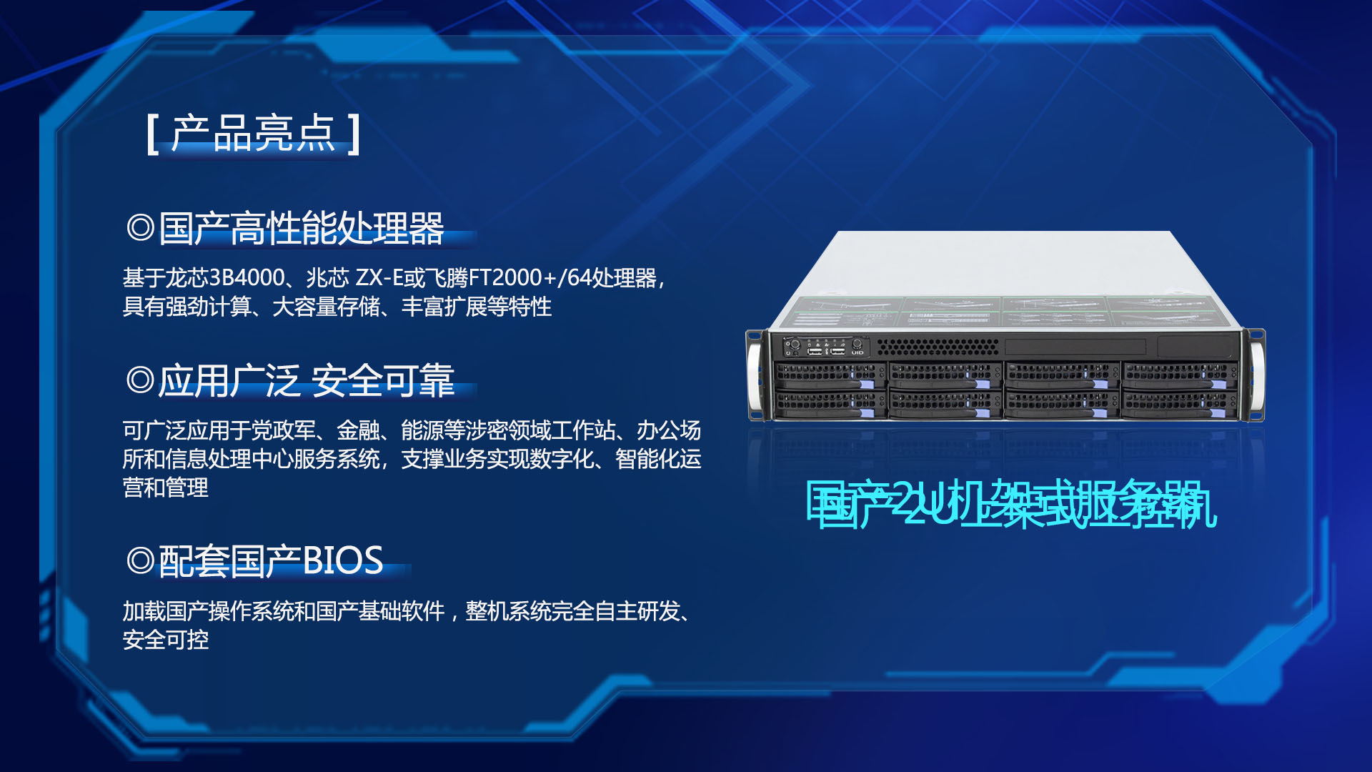 研恒(特控)國產(chǎn)2U機(jī)架式服務(wù)器基于龍芯3B4000、兆芯 ZX-E或飛騰FT2000+/64處理器,具有強(qiáng)勁計(jì)算、大容量存儲(chǔ)、豐富擴(kuò)展等特性,配套國產(chǎn)BIOS, 加載國產(chǎn)操作系統(tǒng)和國產(chǎn)基礎(chǔ)軟件,整機(jī)系統(tǒng)完全自主研發(fā)、安全可控。可廣泛應(yīng)用于黨政軍、金融、能源等涉密領(lǐng)域工作站、辦公場所和信息處理中心服務(wù)系統(tǒng),支撐業(yè)務(wù)實(shí)現(xiàn)數(shù)字化、智能化運(yùn)營和管理。
