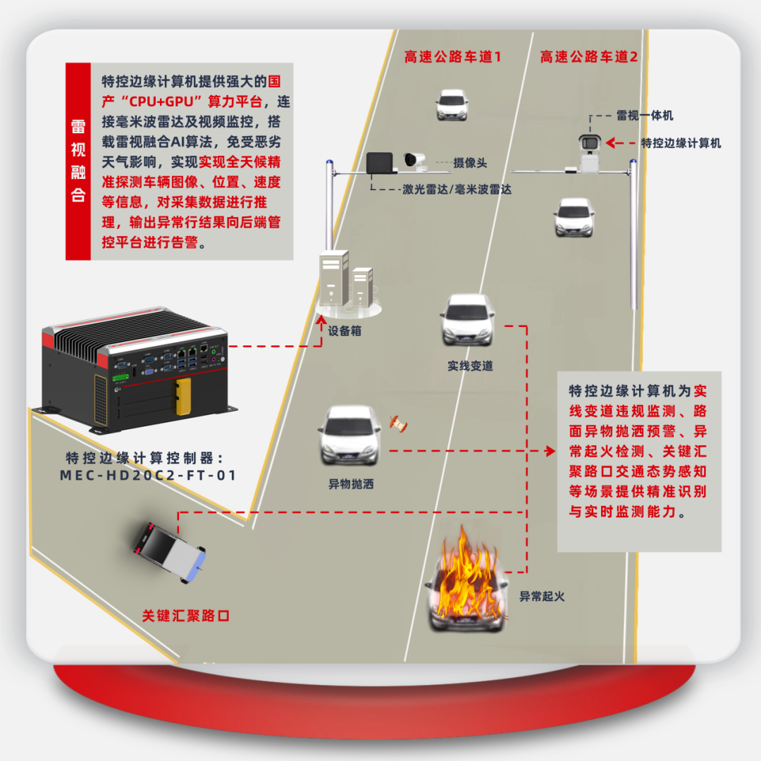 通過集成特控工控機、服務器等尖端硬件的新型智慧高速解決方案,我們不僅實現了收費場景的極致協同,更將事故預警與快速處置能力推向了新的高度,為高速公路裝上了“智慧之眼”,實現實時監測與精準智能分析,極大地提升了高速公路的智能化、高效化與綠色化水平,為現代綜合交通運輸體系的構建提供了堅實的支撐。