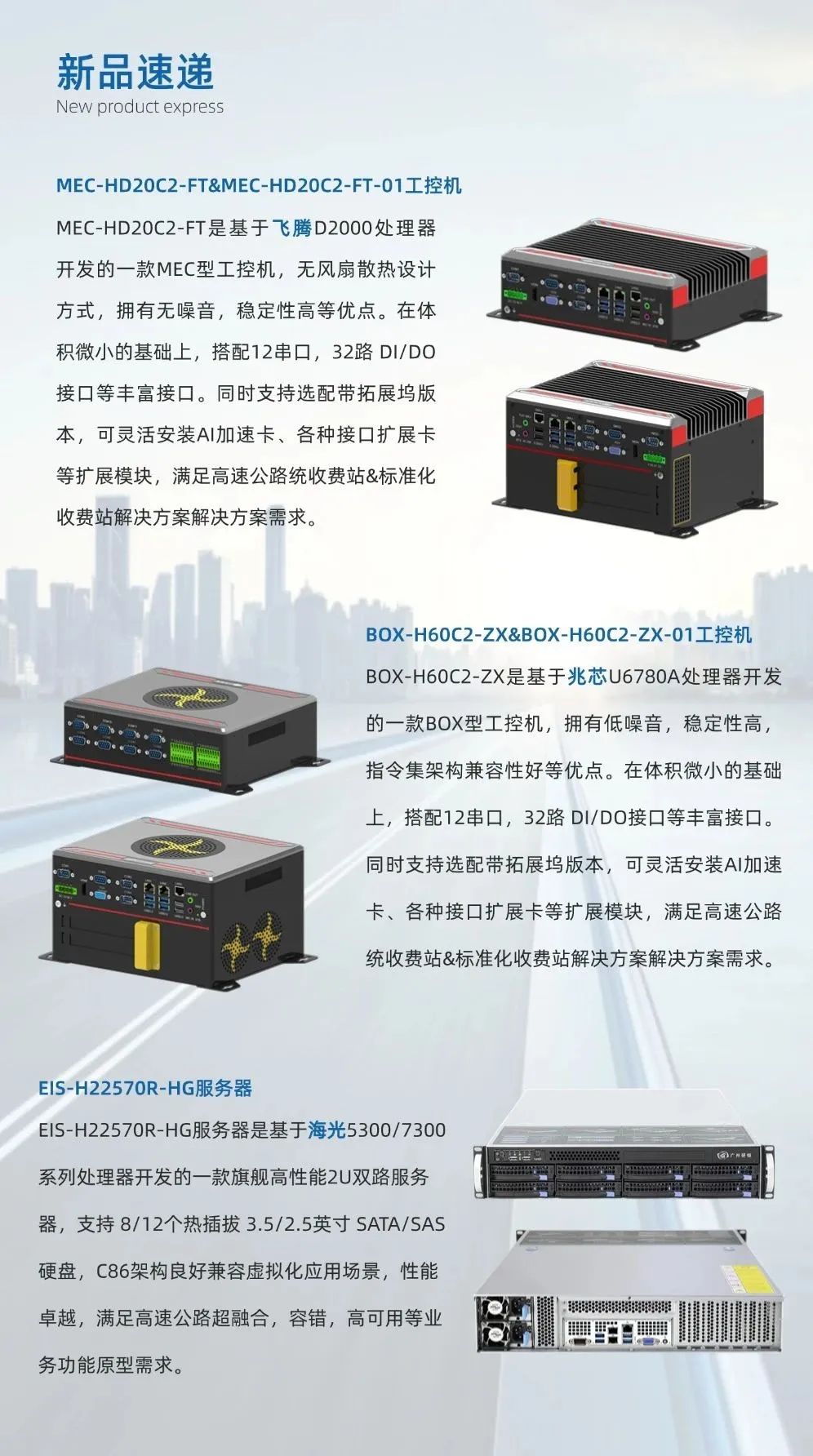 在這場科技盛宴中,特控攜國產龍芯/兆芯/飛騰/海光平臺行業計算機、邊端云等多款產品,以及高速公路智慧收費站解決方案、高速公路ETC自由流解決方案、高速公路雷視融合解決方案、高速公路數字孿生平臺解決方案、國產化高速ETC解決方案等精彩亮相,展現了一幅覆蓋高速公路全鏈條的智能化藍圖。