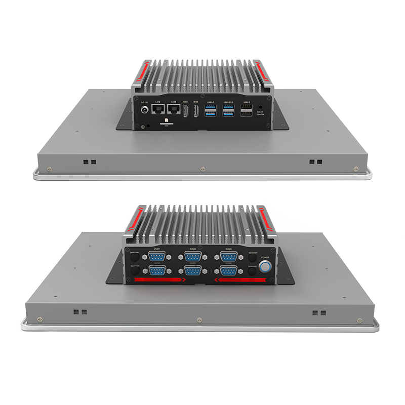 接口豐富:2*HDMI,2*LAN(Intel I225),6*COM,3*USB3.0,3*USB2.0,1*SIM槽,1*2.5寸硬盤位,1*音頻Line-Out+MIC二合一(OMTP國家標準),1*M.2(Key-M,2280,PCIE x2 NVME SDD),1*M.2(Key-B,3052,USB3.0+USB2.0支持4G、5G模塊),1*MPCIE(全高,PCIE+USB2.0,支持WIFI+BT/網卡),2*天線孔(WiFi與4G二選一)